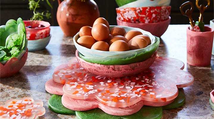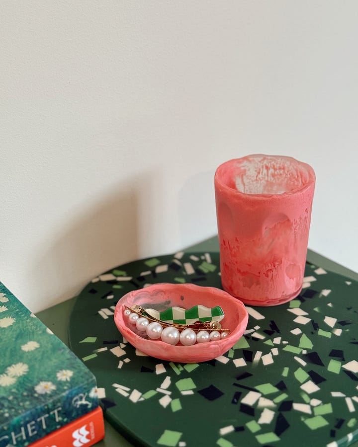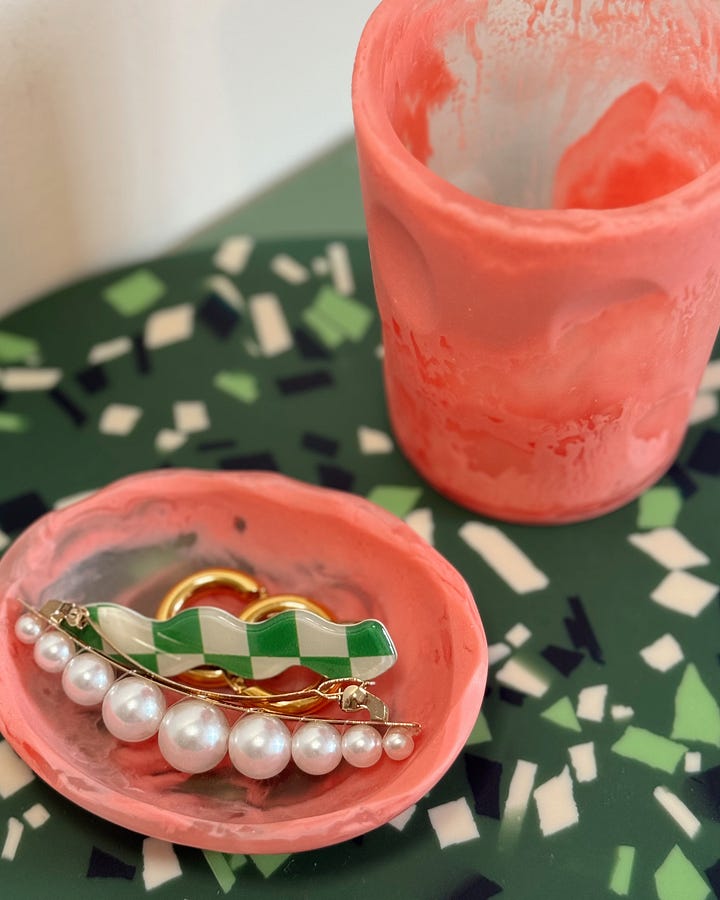 Sage + Clare have released new colours in their beautiful resin pieces and I couldn’t help myself. The Pine Terrazzo colour way caught my eye straight away and once I had done a bit of internet perusing and realised there had been a stunning peony pink shade at one point, my hyperfixation started. I ended up picking up a selection of the Pine Terrazzo from Sage + Clare directly and some Peony pieces from Bungalow Trading Co. I’m in love and they look so gorgeous together. I’m also a big fan of the Spearmint and Taffy Terrazzo.