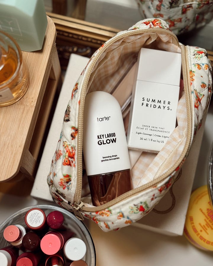 After a very lazy (ie exhausted and sleep deprived) summer of very little makeup, I’ve been trying to take a couple of minutes in the morning to apply at least a light face. I feel totally confident going makeup free but I also feel like I’ve done something for myself by taking this time. Enter Summer Fridays and Tarte. Summer Fridays Sheer Skin Tint has been firmly in my makeup rotation since it launched. It’s a beautiful sheer coverage that isn’t too dewy but gives the skin a healthy glow that lasts all day. I recently picked up the Tarte Key Largo Bronzing Drops in Bronze Glow and turns out they are an absolute dream mixed with my Summer Fridays tint. The drops come in four shades (unlike certain other viral bronzing drops…) and are a serum infused, hydrating formula. They’re also all glow and no glitter!